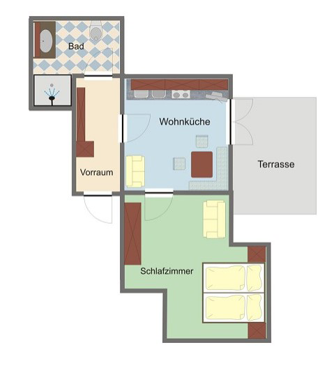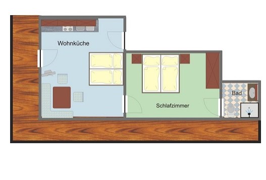 - Wohnküche mit Schlafsofa für zwei Personen